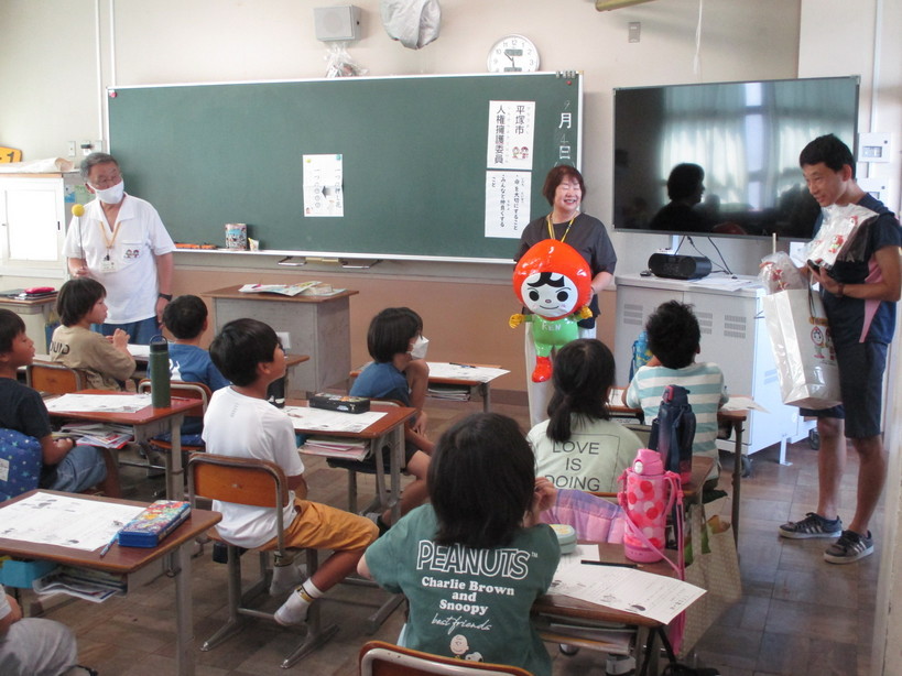 昨日の2校時、3年生を対象に「人権教室」を実施しました。 平塚市人権擁護委員の方々が来校してくださり、「一つの押し花」というお話を題材に、「命を大切にすること」「みんなと仲良くすること」についてお話くださいました。 | |