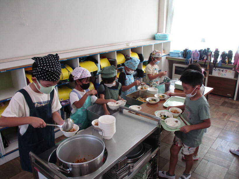先日タウンニュースでも大きく取り上げられましたが、今月からの中学校給食開始にあわせて、金目小学校の給食も、新しく大神地区に建設された「平塚市学校給食センター」で調理され運ばれてきています。 食器や食缶も新しくなりましたが、1年生も上手に配膳しています。 次のURLに、毎日12時頃「本日の献立」がアップされますので、ご覧になってみてください。金目小学校は「A献立」です。 hiratsuka-slc.com/menu/ | |