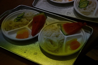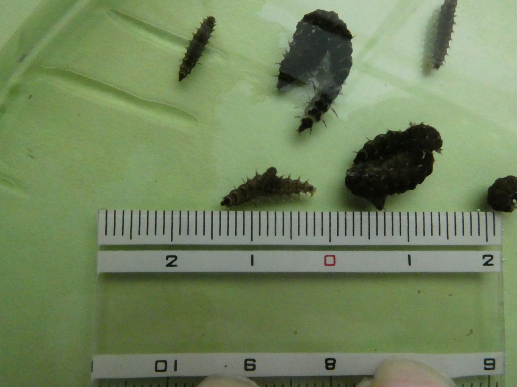 孵化して53日目の幼虫の選別と夏場の飼育対策 今、飼育しているゲンジボタルの幼虫は、捕獲した種ボタルが5月22日産卵し、それから21日目の6月12日に孵化した幼虫です。孵化した直後の幼虫の体長は約2mmほどの大きさでした。(参考:@、➁) それから53日目(8月3日)も経って幼虫の体長は生まれた時と全く同じ体長2oの幼虫もいれば、餌をいっぱい食べて体長15oに成長した幼虫もいて様々です。これが自然界での成長の仕方かもしれません。 いろんな成長の異なる幼虫がいるということは、逆にすべての幼虫が一様に成長していると、仮にその年に天変地異といった大きな出来事が起きれば、一気に絶滅の危機になりかねません。そこで一気の絶滅を防ぐ意味でいろんな成長の異なる幼虫が居れば1年目、2,3年目年で成虫となり、2,3年間は毎年産卵して次世代へと種を繋ぐ事が可能になります。即ち、餌が十分にあっても、その集団の中には本能的に餌を食べずに1年たっても生まれた時と同じ体長のままでいる幼虫が観察されるのです。 しかし、人工飼育の場合には効率よく一様に成長させるのが理想的です。そこで、8月3日、成長の度合いを3段階(即ち、大:体長≧13mm(左最上段写真)、中:10mm≦体長<13(左中段上写真)、小:体長<10mm(左中段下写真))に選別して、それぞれ別の飼育容器(大・中の幼虫は2段式循環飼育容器、小の幼虫は冷房のある室に置かれたバッチ式飼育容器)で飼育することにしました。 夏場の飼育対策 ゲンジボタルの幼虫は特に夏の高水温に弱いといわれています。昨年と一昨年の飼育では夏の水温がうまくコントロールできずに全滅させてしまいました。(ゲンジボタル幼虫の飼育適温は冬場の5℃から夏場の25℃の水温といわれています。) そこで、今年は昨年、一昨年の二の舞を踏まないために、左写真最下段のように飼育水槽の上から、循環水が出てくる付近に扇風機で風を吹き付け、更に水の入ったペットボトル(350ml)を冷蔵庫(冷凍室)で凍らせて、これを飼育水槽に一日に3回(11時頃、14時頃、16時頃)浸し、また最高・最低水温測定温度計を浸して最高水温が30℃以内(飼育経験から30℃でも数時間であれば生存可)に収まるようにして気を配りながら飼育しています。 ホタル幼虫やジャコウアゲハなどを飼育するにあたって、ここ数年の地球規模の夏の異常高気温(否、高温が定常化しまった!)について世界中の人々が真剣に考え、取り組んで行かねばならないと実感している次第です。 (ふぁいあ ふらい) |