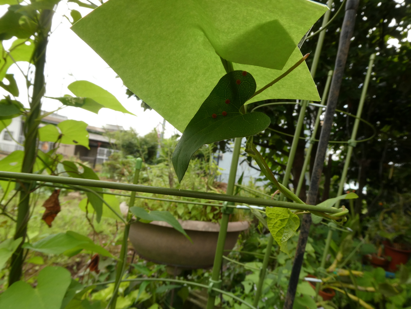 今季初めてジャコウアゲハが産卵 小学校の理科の教材に! これまでの状況 今年の春は、越冬蛹から羽化して親となったジャコウアゲハ(4月末〜6月)が1頭も自宅のウマノスズクサへ産卵しに来ませんでした。 そこで、千須谷在住の知人から8匹(1齢〜3齢幼虫)をもらい受けて自宅の庭で飼育した結果、6月下旬に2頭が羽化(うち1頭はちいき情報局に第1報、第2報、第3報として報告)しました。残り6匹のうち3匹が7月1日現在、蛹となって羽化を待っています。さらに残った3匹のうち1匹は蛹化直前に蟻に襲われ死亡、2匹は現在所在不明となっています。庭の草むらで蛹となって羽化して姿を見せてくれればと思っています。 6月29日に初飛来 今季初めてジャコウアゲハが産卵 前日からの雨が止んだ6月29日の10時過ぎ、玄関前に置かれた植木鉢のウマノスズクサにジャコウアゲハの成蝶(庭のどこかで羽化したジャコウアゲハと思う)が飛んで来て、葉っぱに産卵している姿(左写真の1枚目)を偶然に見ることができました。 飛び去った後、葉っぱの裏を丹念に調べたところ、4カ所(4鉢)に産み付けられていました。その写真が左と下の写真です。左の写真3枚は葉裏に産み付けられています。一方、下の写真(左)では葉表に複数個の卵が産み付けられていました(産卵の経験の浅い成蝶のメスか?)。産み付けられたばかりの卵が紫外線をまともに受けると何らかの障害が生じたり、また野鳥に見つけられて食べられるのではと思われましたので紙(うぐいす色のコピー用紙)で覆うことにしました(下の写真 右)。 市内のある小学校の理科の教材として提供 5月半ば、市内のある小学校からクラスでジャコウアゲハを育てたいという相談がありました。その時は残念ながら、前述したように成蝶が飛んで来ず、もちろん卵も幼虫も皆無で、希望に応えることができませんでした。しかし、この時期になってやっと鉢植えのウマノスズクサに卵が産み付けられました。その1鉢(左写真の上から3番目)を理科の教材用として子どもたちに育ててもらうことになり、7月1日に引き渡すことができました。無事に孵化、幼虫、蛹化、羽化、飛翔して子どもたちの期待に応えられることを願っております。(Y.Y) |
