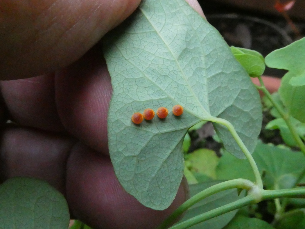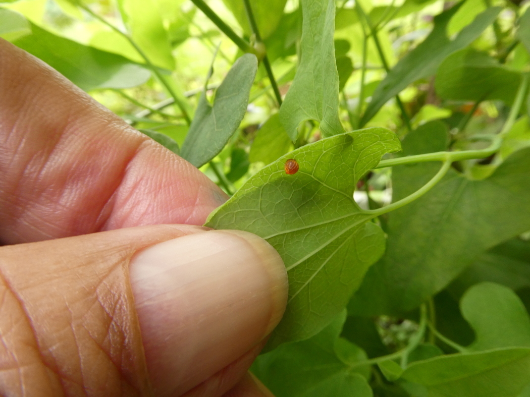 ≪金目の自然 蝶≫ 今季、初めてジャコウアゲハが産卵 小学校の理科の教材に