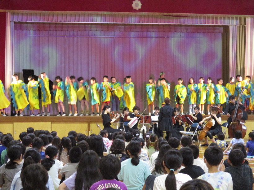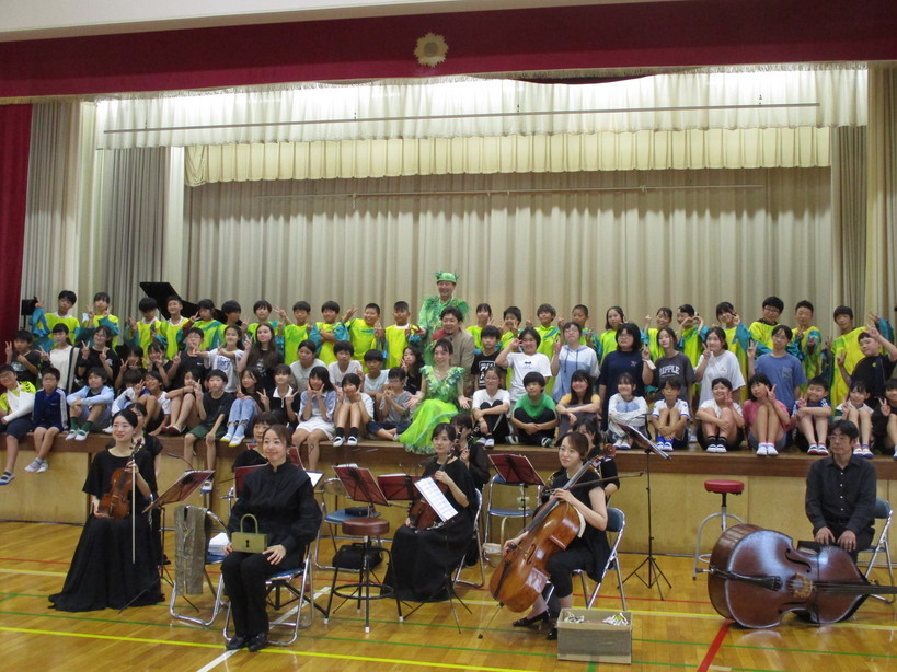 今年の芸術鑑賞教室は、劇団「小田原オペラ」による『魔笛』でした。 オペラの世界へ視覚から引き込むプロジェクションマッピングに、素敵な歌声と生演奏、そしてコミカルな演技に子どもたちは大満足でした。 小田原オペラさんのHPも是非ご覧になってみてください。 小田原オペラ (odawaraopera.com) 暑い体育館でしたが、扇風機をフル稼働させ、子どもたちは適宜水筒で水分補給をしながら鑑賞しました。幕間には空気の入れ替えも行い、具合の悪くなる児童もなく実施できて良かったです。 |