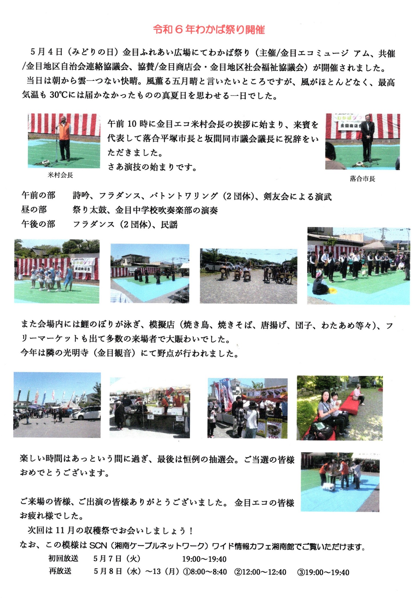 また、公民館活動や各種団体の諸活動も活発に展開され、平塚市内で唯一のエコミュージアム活動を、地域の人々が支えあう、秩序あるコミュニティーの形成を目標に、金目エコミュージアムと名付け、自然景観・歴史文化・産業・イベントの4分科会で構成、それぞれが学習と研究をする中で鋭意推進している地域でもあります。