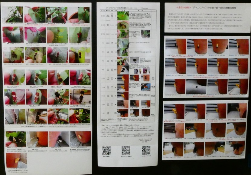≪金目の自然≫ 金目の鳥、金目の蝶を展示 金目エコミュージアムは、カワセミ(翡翠)を金目のシンボルバード「金目の鳥」として選定し、金目の鳥「カワセミ」を多くの皆様方に知ってもらおうと、3月21日から金目公民館ロビーにて金目川や金目親水公園、大根川で撮影されたカワセミの写真を展示しました。 また、「金目の宝」として脚光を浴びつつある「ジャコウアゲハ」が産卵→孵化→幼虫の成長→蛹化→蛹→羽化するまでの記録写真が展示されています。 ぜひ、金目公民館に来られた際は観ていただき。併せて金目の自然環境に関心を持っていただければと思っています。(Y.Y) | |