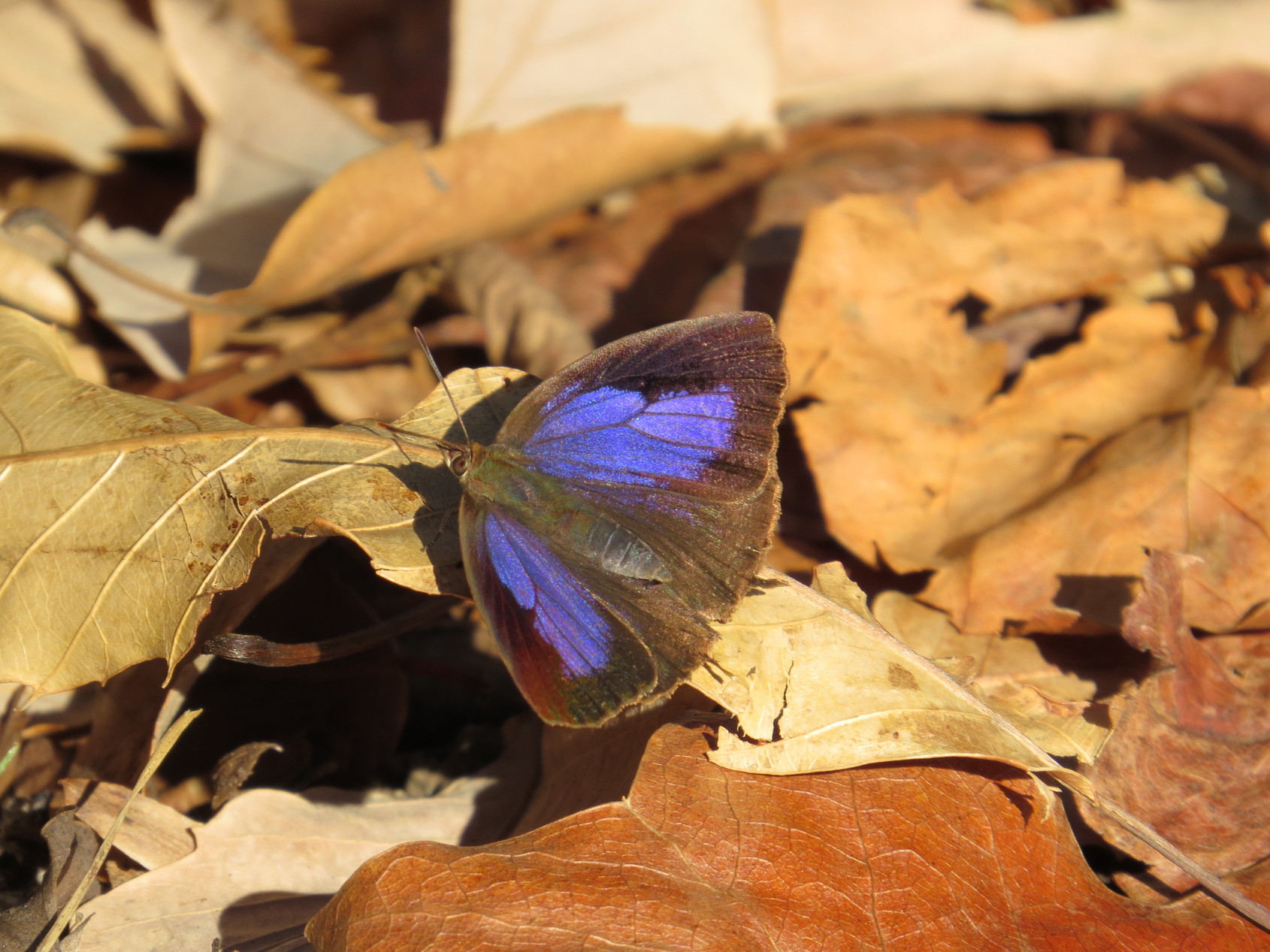 ≪金目親水公園の自然≫ 冬を成虫で過ごす蝶 自然型の公園として知られている金目親水公園では四季を通じて約40種近くの蝶が飛び交い、また観察されます。これらの蝶は親水公園内で卵、幼虫、蛹、成虫のいずれかの形態で冬を越します。今回は成虫で冬を越す蝶をご紹介します。 上の2枚の写真は公園の原っぱに日光を浴びに来たキタキチョウと木蔭の枯れ葉を保護色として静かに春を待つクロコノマチョウです。 また、下の写真は、常緑樹の葉っぱ(裏、表)や枯れ葉の上で冬越しをしているウラギンシジミ(左写真)、ムラサキシジミ(中写真)、ムラサキツバメ(右写真)の成虫です。更にその下段の各写真は、冬の暖かい日には翅をひろげてエネルギー確保のため、日光浴(日向ぼっこ)をしているウラギンシジミ(左写真)、ムラサキシジミ(中写真)、ムラサキツバメ(右写真)です。 さらに、これらの蝶を含めて冬の金目親水公園で観られる蝶をPDFでご覧ください。(Y.Y) | |