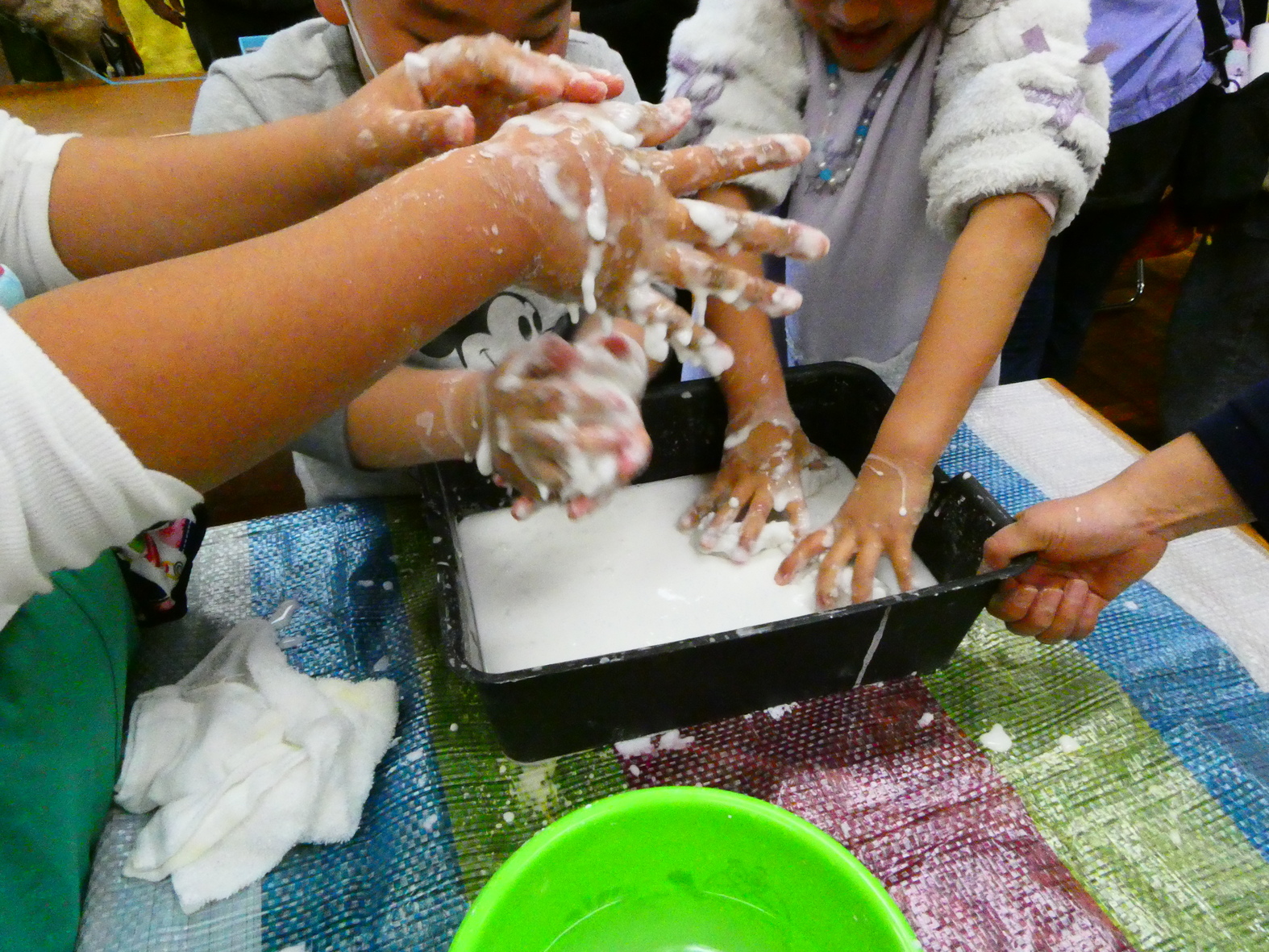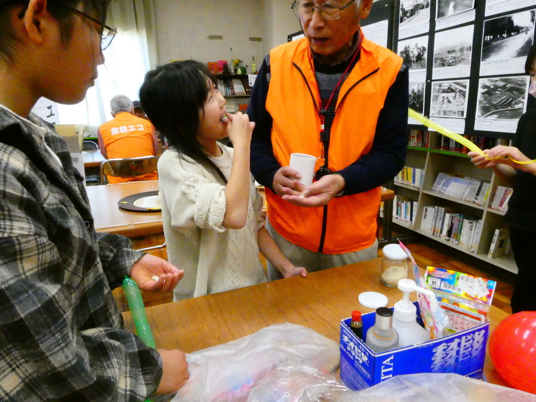 ≪金目公民館まつりに参加≫ 二日目の様子 金目公民館ふれあいまつり2日目(3/3・日)は、1日目の体験コーナーで行われた「楽しい科学実験」9種の他に、新たに2種の科学実験を追加して行われました。その一つは(シャボン玉の表面張力(大・小異なる大きさのシャボン玉をストローで繋ぐと大・小シャボン玉の大きさはどうなる?)について実演およびこの現象がどのようなところで見られるかについて解説が行われました。 またこの日は「ひな祭りの日」ということで、密度(比重)の異なる原料のお米とあられ(市販)が混ざった容器を振動させれば、密度の小さいあられは浮き上がり、密度の大きいお米は沈んでいく。この原理を応用して、予め容器に入れておいたあられ(市販)の上にお米を入れ、「火を使わずにお米からあられが一瞬に出来上がります」と言って、容器を振動させる手品を披露しました。振動させて後、蓋を開けて「ほら、一瞬にして火も使わずに雛あられの出来上がり、、!」といって、(手品)で出来上がった雛あられを子ども達に数粒づつ食べてもらいました。「本当に雛あられだ! どうやって出来たんだろう?」と不思議な顔をしていました。それを見ていた大人たちも不思議がっていましたが、軽いものは浮き、重たいものは沈むことの手品の原理を分かってくれたようです。このように科学的原理を手品に変えて、その仕組み(原理)を理解させることは科学教育に必要なことだと思っています。 なお、以下の写真は2日目の体験コーナーと展示コーナーでの写真です。(Y.Y) |