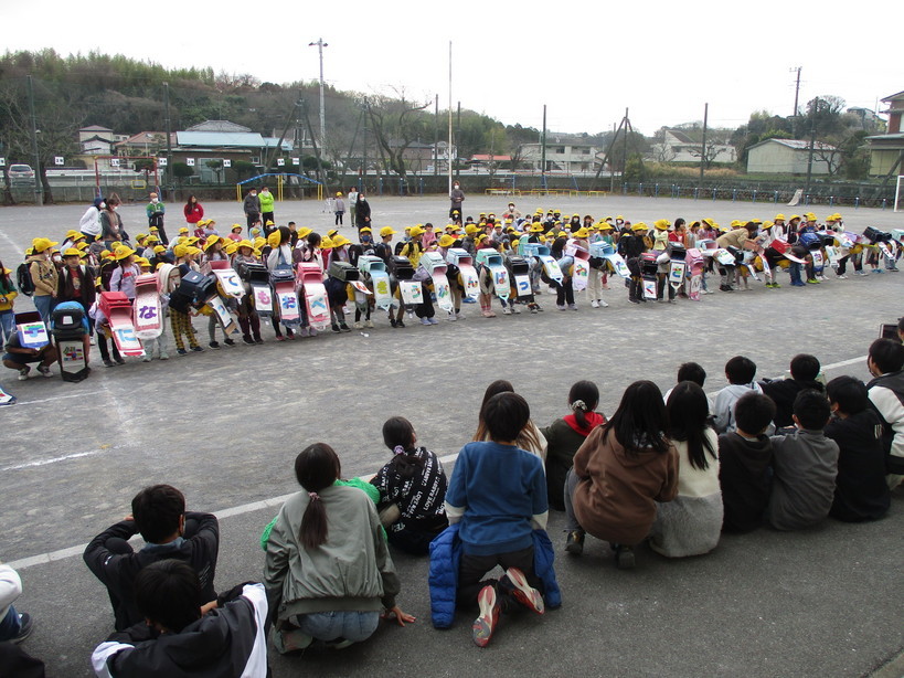 今日はお天気にも恵まれ、全校が校庭に集まって「6年生を送る会」を行いました。 全学年混合チームによるドッジボールでは、優しく気を遣ってボールを投げる6年生、また6年生にボールを当てて喜ぶ低学年の姿が微笑ましかったです。 そして各学年からのプレゼント、6年生からのお礼の合唱で会を閉じました。 笑いあり涙ありの、心のこもった素晴らしい会でした。 |
