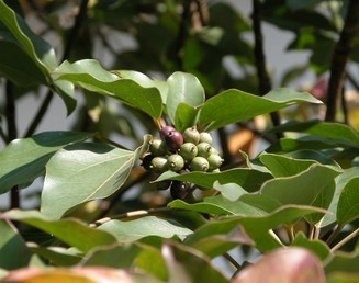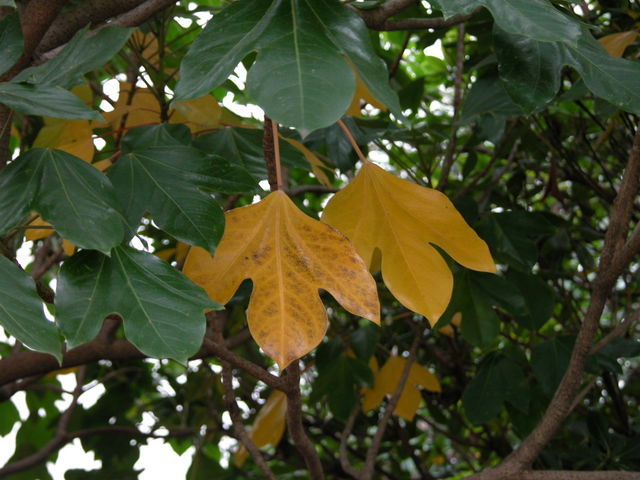 成長とともに形が変わる葉、縁起のよいカクレミノ 1月30日、塚越古墳公園近くに住む孫と同公園へ散歩に出かけました。公園の南端に藪椿、イロハモミジ、モクレイシ、カヤ、そしてカクレミノ等が植えてありました。これを観て、はぁっと思い出したのがカクレミノです。というのは先日、北金目に住む知人からカクレミノの樹木について色々と聞かれたことがあって気になっていたところです。そこで、このカクレミノの事について投稿いたしました。 このカクレミノは「成長するにしたがって葉の形が変わる」という特徴があります。幼木のうちは葉の先が分かれて切れ込みが3つあります(最上段写真の奥の左の葉)が、葉の切れ込みが徐々に浅くなって(最上段写真の奥の中・右の葉)いきます。更に実が稔る頃までに成長した木の葉は卵型になります(最上段写真手前の左の葉)。古くなってきた葉は黄葉して落葉します(最上段写真の手前の右)。 さらに少ない日差しで育つことから、下の葉にも日差しを届けやすいように適応し、上部に枝葉が茂り、中間から下部は幹だけになって、全体に傘を広げたような樹形になります。木の成長とともに葉の変化、色を楽しめる庭木です。 またカクレミノ(隠れ蓑)はヤツデ、アオキと並んで日陰で育ち、あまり手間をかけなくても育つ常緑樹で、葉も大きくヤツデに比べ樹形も優しげです。従って、日陰に緑をたたえてくれる庭木として茶庭や店舗の軒先でよく見かけられます。 なお、塚越古墳公園以外に金目中学校内の体育館と建物(工作室棟?)の間で見られます。金目地区内を散歩しながら探して見て下さい。 何故、縁起の良い木なのか? カクレミノの葉は天狗の民話に出てくる隠れ蓑と形が似ていることから名づけられました。天狗の霊力がこもった藁蓑(わらみの)は、着ると姿を消すことができると言われています。「厄災から身を隠す」という意味合いから縁起がよいといわれています。 左写真 上から順に ●カクレミノの葉っぱの形状 塚越古墳公園 R6.1.30 ●カクレミノの花 金目中学校 06.8.5 ●カクレミノの実 金目中学校 05.11.20 ●カクレミノの黄葉 金目中学校 06.12.17 (親水公園ホタル保存会 ふぁいあ ふらい) |