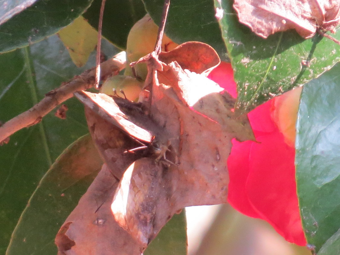 やっと見つけたムラサキツバメの越冬姿と場所 今冬、金目親水公園内でムラサキツバメやムラサキシジミの越冬している場所と姿をこれまで何度も探しに出かけましたが、これまで見つかっていませんでした。 2月1日は4月の陽気となりました。この陽気につられて何処かで越冬しているこれらのシジミチョウが飛び回るのでは予想し、また期待しながら午後1時半過ぎに同公園へ出かけました。 予想どうり、常緑樹(椿)の近くで飛び回っている1頭の蝶を見つけました。暫く飛び回ったあと、疲れたのか?椿の小枝に引っかかった枯れ葉に停まり、それ以後は動かなくなりました。そこで、遠くからその場所をめがけて撮った写真が左の2枚の写真です。 撮った後、写真をよく見ると4頭のムラサキツバメ(翅の後部に2本の突起が特徴)が集団で越冬している姿がありました。(もし、写真で確認できなかった方は下のPDFをご覧ください。白〇で示しています。) これでやっと、今冬のムラサキツバメの越冬姿と越冬場所を確認することが出来ました。 (ふぁいあ ふらい) |