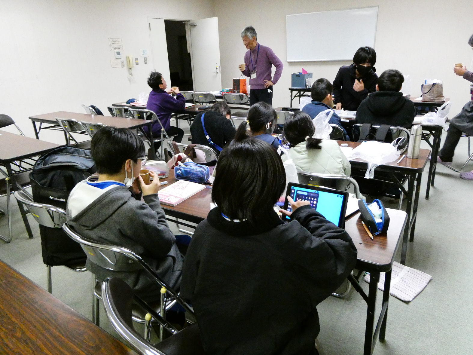 金目の寺子屋(1月-1)を開催した! 令和6年最初の寺子屋が冬休みが終わった1週間後の1月16日、17時から19時まで金目公民館A会議室で開催されました。参加者は小学生7名、中学生6名が学習支援者3名(通常は6,7名)の下で学習しました。 学習内容は小学生が持参した思い思いの問題集(漢字の書取り、算数:小数点のある割る数と割られる数の計算、色々な形の体積など)、中学生は英語、数学、理科(化学)、社会(地理)の問題を解きました。解らないところは学習支援者にアドバイスをもらいながら解いていました。また支援者が積極的に解き方のアドバイス受けての和やかな寺子屋でした。 開始1時間後には、おやつ(クッキー、チョコクッキー、お煎餅と紅茶、ミルク紅茶など、2杯飲む子もいました)が出されて、高ぶった思考力を一旦落ち着かせ、さらに身体を暖かくして後半の学習に励みました。 (Y.Y) |