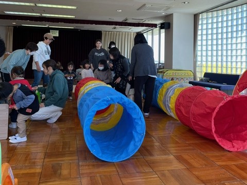 子育て支援「すくすくっこ」活動報告(1月) 本年もたくさんの方に遊びに来ていただけるよう、活動していきます。よろしくお願いします。 1月15日のすくすくっこは、金目公民館自主事業と共催で「ちびっこわくわく運動会」を行いました。参加者は8組(子供10人)お母さん、お父さん、おばあちゃんの参加もありました。 自由遊びからはじまり、歌遊び、大型絵本、体操の先生のもと、親子でふれあう体操で体もポカポカとしてきました。 今回の為に自治連さんにご協力頂き、新しく用意された大きなトンネルは、全員くぐることが出来ました。 保育士さんのエプロンシアター「3匹のこぶた」は興味深く見入っていましたね。 大人向けパン食い競争も盛り上がりました。 終わりに集会室の半分くらいと感じる大きなパラバルーンを皆で持ち、風船を乗せたり、内側に子供たちが入ったり、一斉に手を離して天井まで上がっていったのには、びっくりしましたね。 「ちびっこわくわく運動会」 皆さんの活気と笑顔が溢れて親子でいい汗がかけました。 次回は2月19日(月)10:00〜11:30、1階和室にて、桃の節句にちなんでの工作と子育てアドバイザーさんが来ます。 お気軽に遊びに来てください。(YK) |