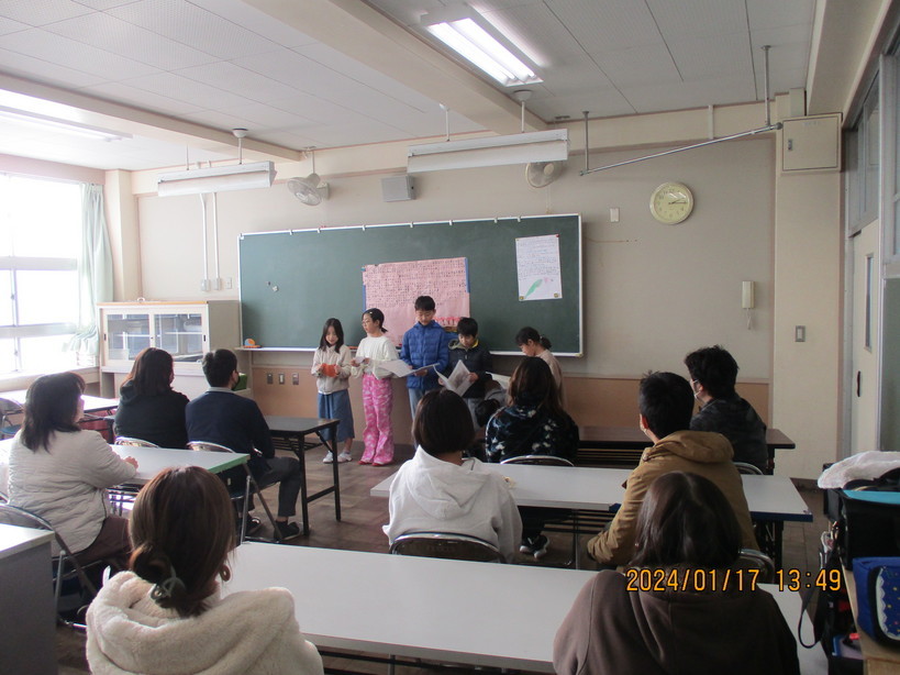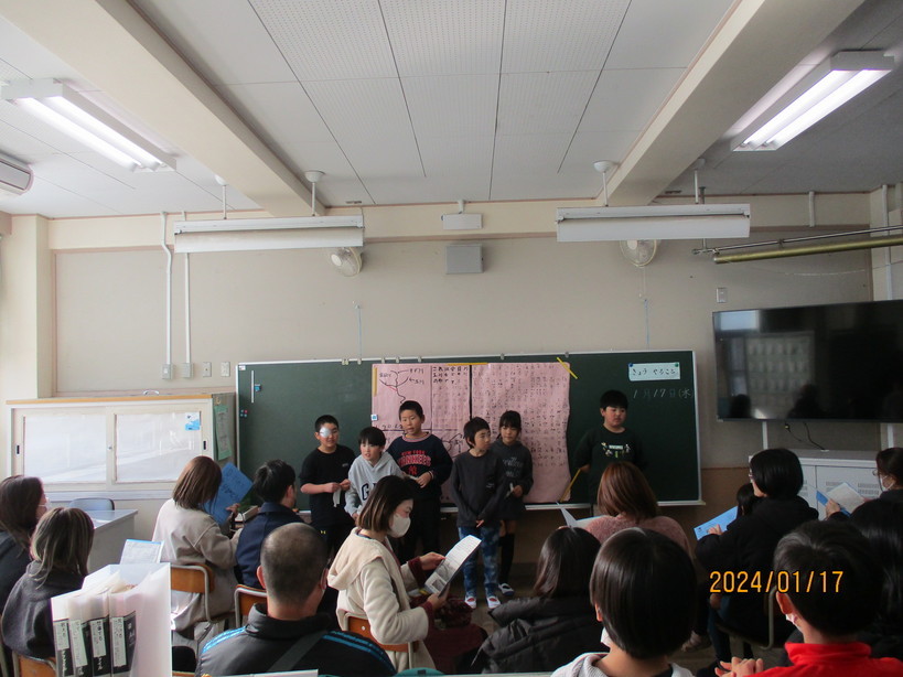 昨日の5時間目、4年生は学習発表会を行いました。 4年生はこれまで、総合的な学習の時間で金目川に関する様々なことについて調べてきました。学習発表会では、歴史や生き物、水害や橋などグループごとにまとめたものを、保護者の方々へ向けてプレゼンテーションしました。保護者の方々からの質問にも、自信満々に一生懸命に回答している姿が印象的でした。 そして今日は、3〜4時間目に体育館で書初め大会を行いました。 姿勢も良く、落ち着いた雰囲気で、「美しい空」と書き上げました。 なお、明日は5・6年生が書初め大会を行う予定です。 | ||