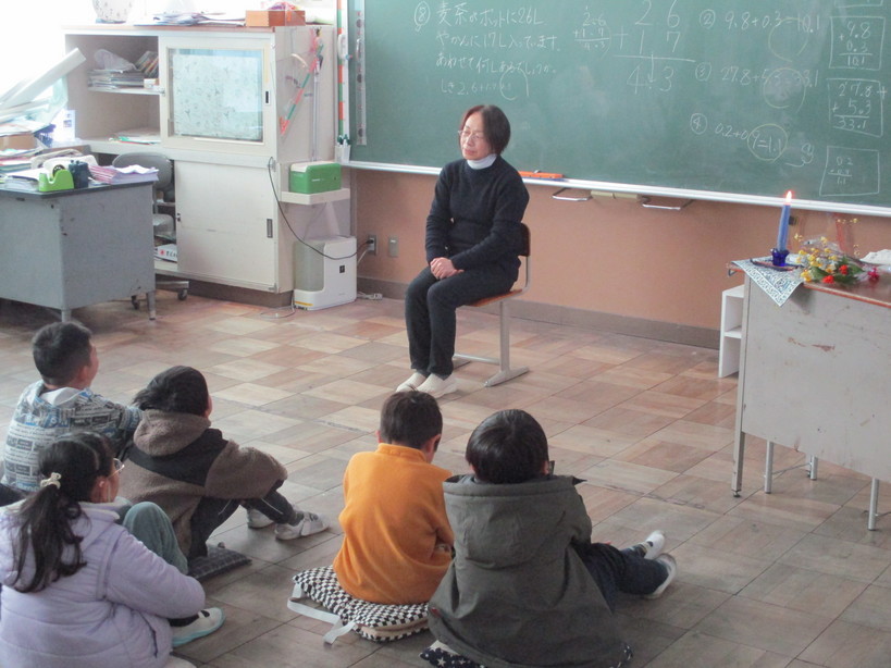 読書週間最終日の今日は、読み聞かせボランティアの「なないろらんぷ」の皆様に来校いただき、1・3年生を対象に「お話し会」を実施しました。 お話のろうそくに火がともり、子どもたちはお話の世界へと引き込まれて行きました。 金目小学校では日頃より図書ボランティアの皆様に読み聞かせをしていただいており、子どもたちはお話を聞くことが大好きです。読書習慣を身につけ、自分の世界を広げていくことの楽しさを感じさせていきたいです。 また、今日は5・6年生の書初め大会も実施しました。 5年生は「強い決意」、6年生は「伝統を守る」と気持ちを込めて書くことができました。 |