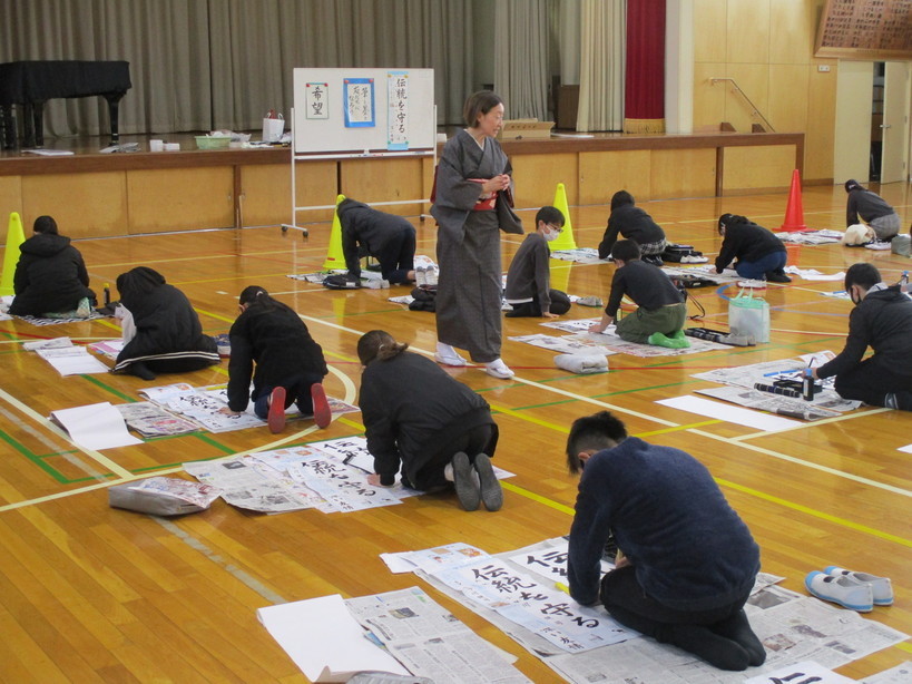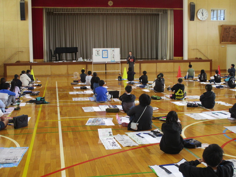 冷え込んだ朝でしたが、3年生は1〜2時間目に体育館で書初め大会を行いました。 お正月らしいBGMを流しながら、3年生にとって初めてとなる毛筆での書初め大会を楽しむことができました。 昨日行いました「池上彰さんによる特別授業」の様子が、ネットニュースに掲載されていますのでご紹介します。(以下のリンクをクリックください) 池上彰氏「私を育ててくれた日本の社会にありがとう」ファミマ特別授業で小学生に語りかける - 社会 : 日刊スポーツ (nikkansports.com) また、TV局の取材も入っていましたので、放映されることになりましたら「地域情報局」で事前にお知らせする予定です。 | |