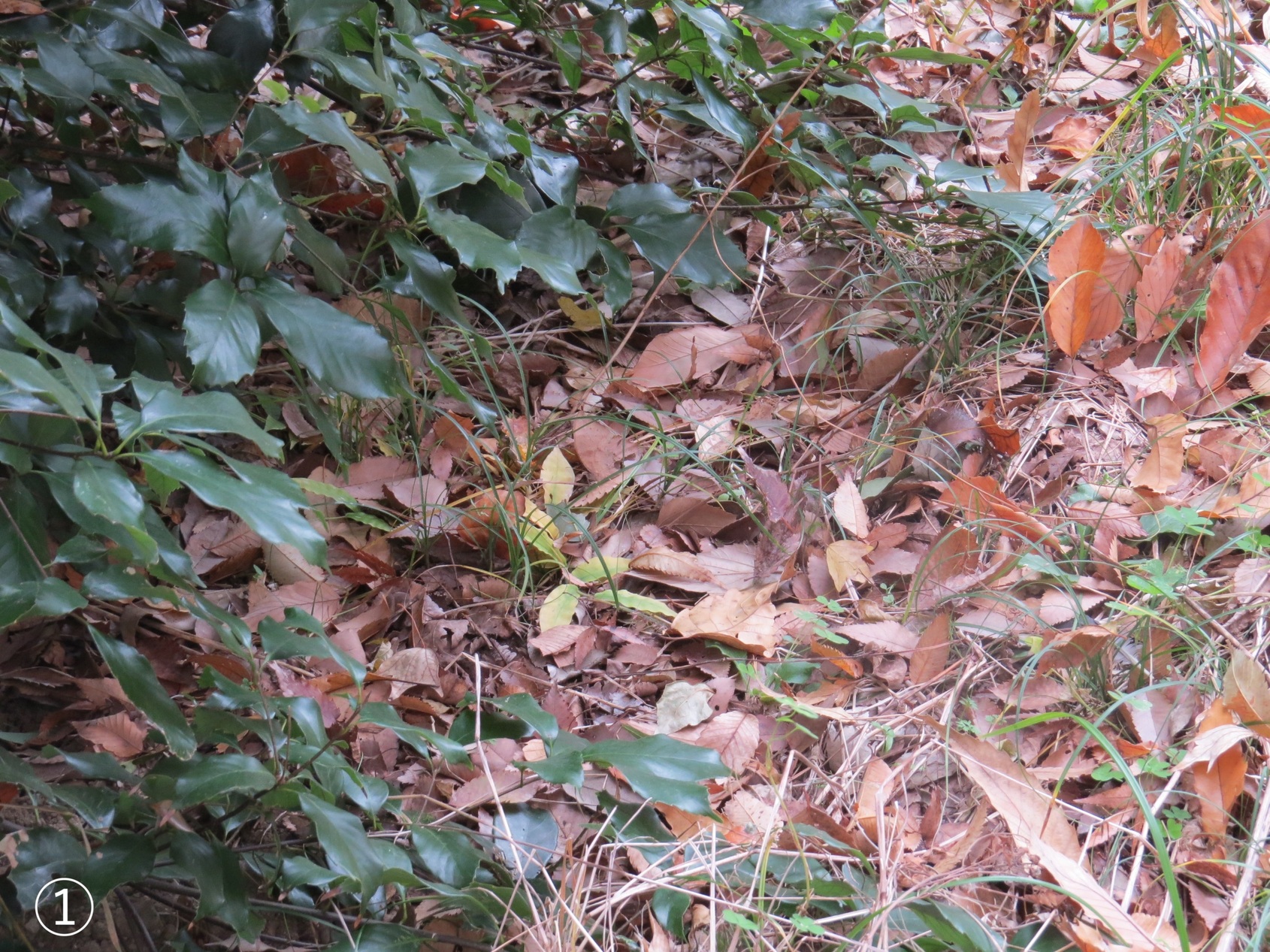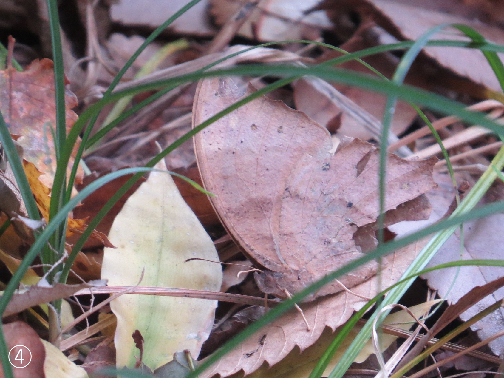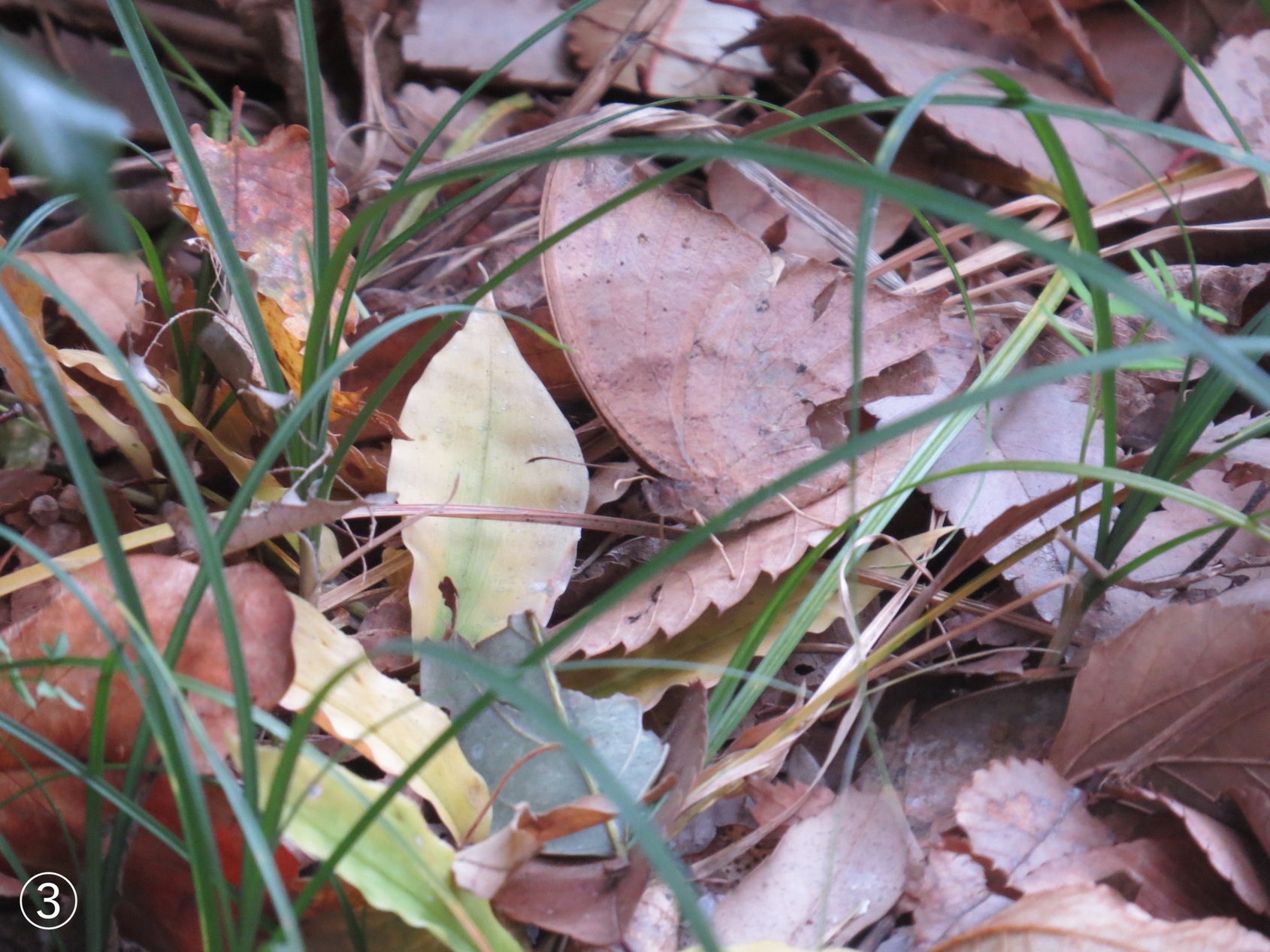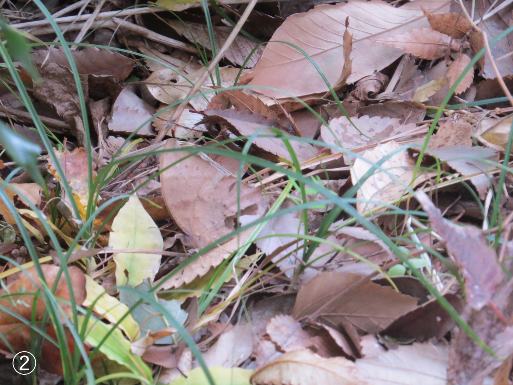≪金目親水公園の自然≫ 私を探して! クロコノマチョウ 今日(12/11)も金目親水公園へ出かけました。公園林内の深い落ち葉をかき分けながら歩いていると、クロコノマチョウ(上の写真を参照)が足元近くから飛び出して「かくれんぼしようよ。私が隠れるから探して!」といった感じで近くの落ち葉へと飛んで隠れました。私もそれに応えるために肉眼と双眼鏡を使って探し、カメラで隠れている場所を撮影しました。その時の写真が下の4枚の写真です。 皆さん! この4枚の写真(➀〜C)からそれぞれクロコノマチョウが何処にいるか探して下さい。そして貴方は何番目の写真でクロコノマチョウを探し出せたでしょうか? 解答は下のPDFをご覧ください。(ふぁいあ ふらい) |