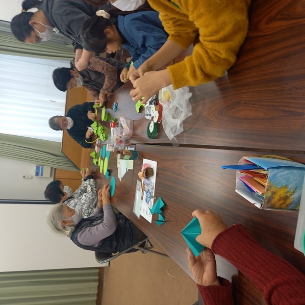 「でこぼこ in 金目」(12月)を開催しました! 12月11日(月) でこぼこ in 金目を開催しました。今回のお楽しみはクルスマスツリー作りです。丸く切った色画用紙を折って組み立て、飾りをつけて出来上がり!ですが、各々個性が出ていろんなツリーが出来て面白かったです。 その後、紅茶とパウンドケーキでお茶の時間。「来年も元気でがんばろうね! でこぼこでまた会いましょう」、etc、お喋りながら楽しく終了。 次回は 令和6年1月15日(月)10時〜11時30分 広川自治会館 | ||