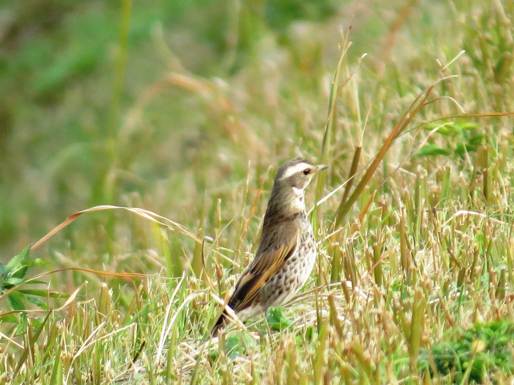 ≪金目の自然≫ 今季のツグミを初撮影 冬鳥のツグミがやっと金目でも見られるようになりました。今季最初に見たのは12月6日の正午前、金目親水公園林の中からクィクィ、クェックェッと数羽が鳴きながら飛んで行き清水川の桜の小枝に止まりました。この時はカメラが無くて撮影できませんでした。 12月10日正午過ぎに公園の自然観察から帰り際、前回と同じ桜の木からクィクィ、クェックェッとの鳴き声が聞かれ、慌てて撮ったのが上の写真です。今季初撮影のツグミの写真です。 ツグミがやっと見られるようになり、金目にも冬がやって来た感じがします。これからは田畑や芝生など開けた場所で、足を揃えてピョンピョンと飛び跳ねるように歩いは立ち止まり、胸をそらせている鳥が居ればツグミだと分かります。(参考下写真) ぜひ、田んぼへ散歩に行かれる際は独特なポースで辺りを警戒しているツグミを観察して下さい。(ふぁいあ ふらい) |