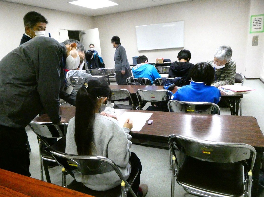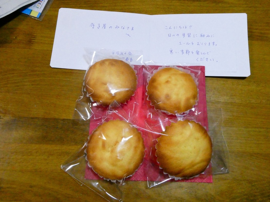 金目の寺子屋(11月-2)を開催しました! 11月21日、11月の第二回目の寺子屋を開催しました。この日は小学生5名、中学生6名、学習支援者6名、保護者4名が参加しました。 小学生たちはは国語の漢字の読み書きの練習は自学で、算数の分母の異なる計算問題は自学習したり、支援者の指導を受けて頑張りました。 また中学生は個々にそれぞれ好きな科目を自学自習といった様子で、ある者は先週の中間試験問題の見返し、ある者は理科(化学)、英語、地理(世界地理)、保健体育の問題を解き、そして時々は学習支援者に質問をしていました。その様子は何となく家族一家、みんなで勉強しているといった微笑ましい様子でした。 更に、学習が始まって約1時間後の休憩時間には寺子屋の会から駄菓子、更に平塚友の会の手作りマドレーヌと子どもたちへのエールのメッセージをいただき、児童、支援者、保護者21名で感謝しながらご相伴あずかりました。(Y.Y) |