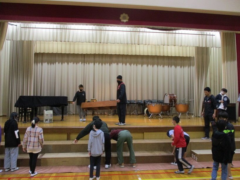 12月8日(金)に予定されている2・4・6年生の音楽学習発表会へ向けて、各学年ともに合奏や合唱の練習に取り組んでいます。 本番まで3週間となった今日は、6年生が昼休みを使って、音楽室にある楽器を会場となる体育館へ運ぶ作業をしました。ひな壇も設置され、これからは練習も本格化していきます。 発表会には多くの保護者・地域の方に、子どもたちの演奏を聴きに来ていただけたら幸いです。2・4年生の部は10:45、6年生の部は13:40の開演予定です。 |