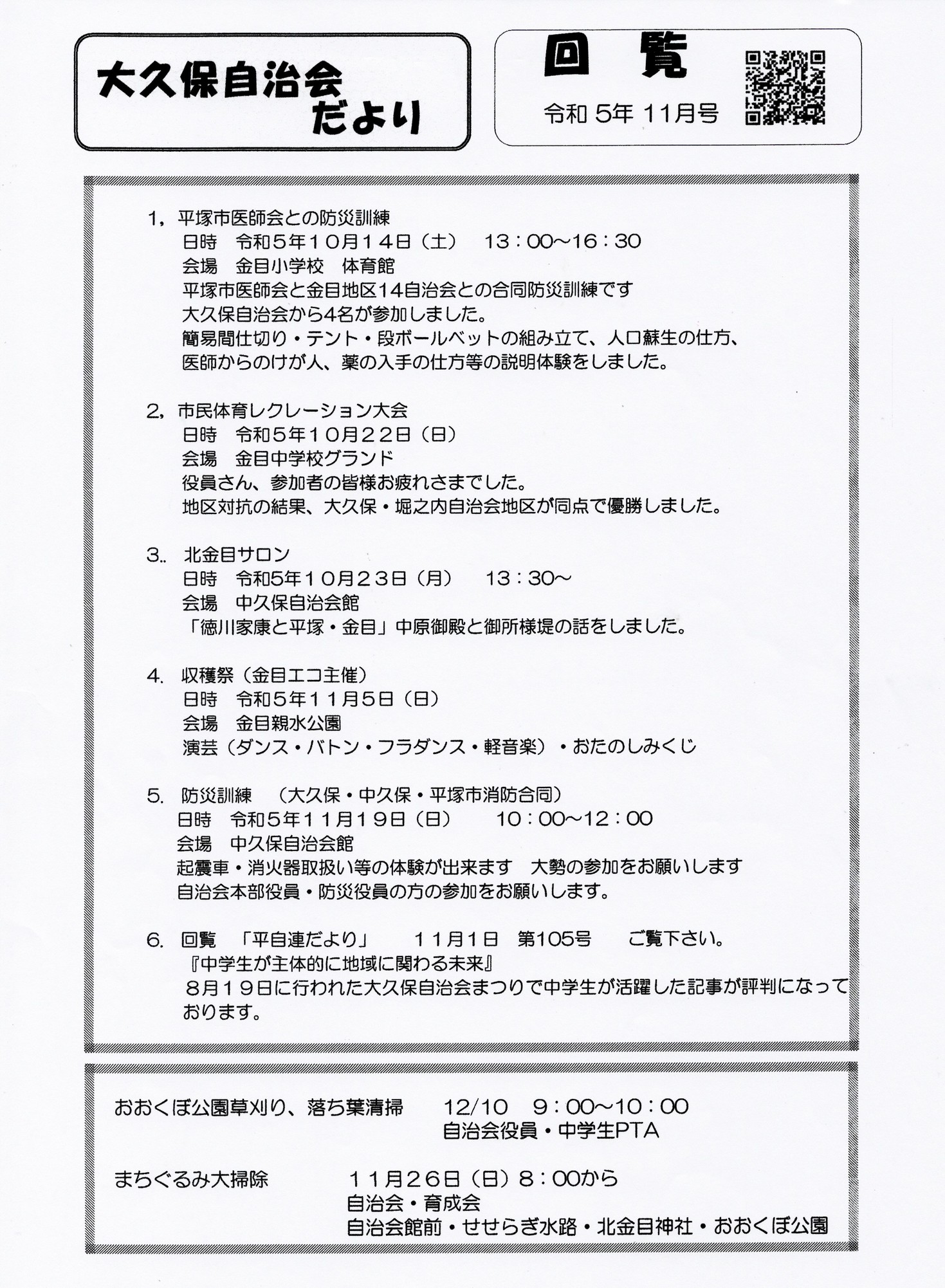 また、公民館活動や各種団体の諸活動も活発に展開され、平塚市内で唯一のエコミュージアム活動を、地域の人々が支えあう、秩序あるコミュニティーの形成を目標に、金目エコミュージアムと名付け、自然景観・歴史文化・産業・イベントの4分科会で構成、それぞれが学習と研究をする中で鋭意推進している地域でもあります。
