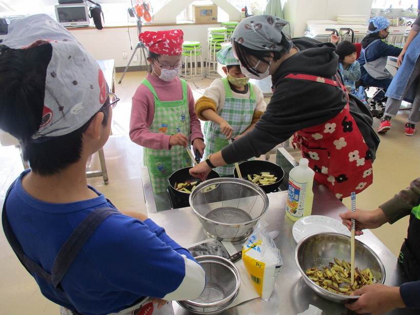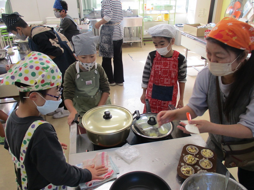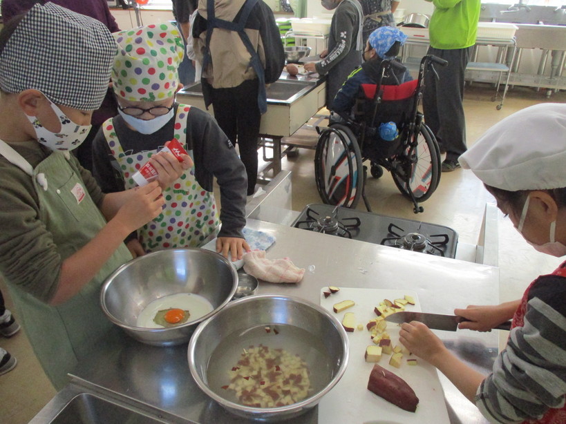 今日は学習室の子どもたちが、10月11日に学校農園で収穫したサツマイモを調理しました。 とてもおいしい「サツマイモ蒸しパン」と「サツマイモスティック」が出来上がり、子どもたちも大満足の様子でした。 |
