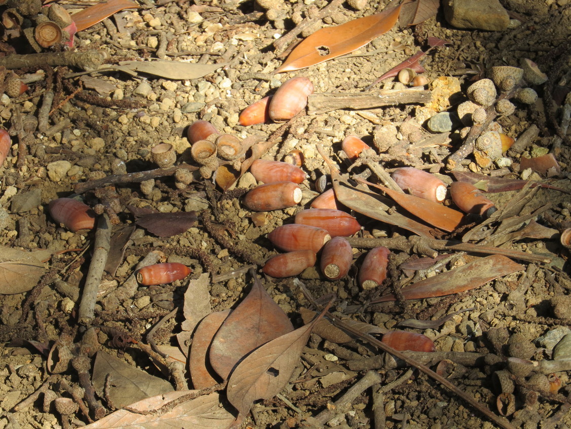 どんぐり拾いが出来ます! 昨今、朝晩が冷え込むようになりました。金目親水公園にも本格的な秋がやって来ました。園内に植えられているどんぐりのなる木(アラカシ、コナラ、クヌギ、シラカシ、マデバシイ)がたくさん実を落としています。またハナミズキの赤い実も落果しています。金目親水公園へ秋の実 拾いは如何でしょうか。 (ふぁいあ ふらい) |