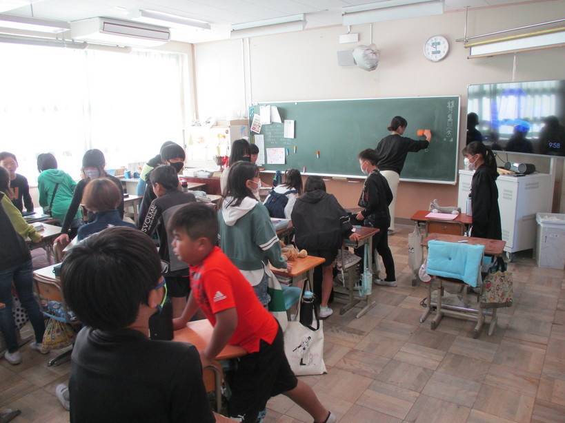 運動会を大成功で終えた金目小学校へも、全国的に流行しているインフルエンザの波がやってきてしまいました。 昨日、今日と全校の約1割が欠席する状況ですが、かろうじて学級閉鎖には至っていません。 予定されていた学習室の「サツマイモ調理」、3年生の「ズーラシア遠足」は延期としましたが、登校してきている子どもたちは元気です。 全校で唯一欠席者のいない5年2組では、子どもたちが楽しみにしている席替えが行われました。 | |