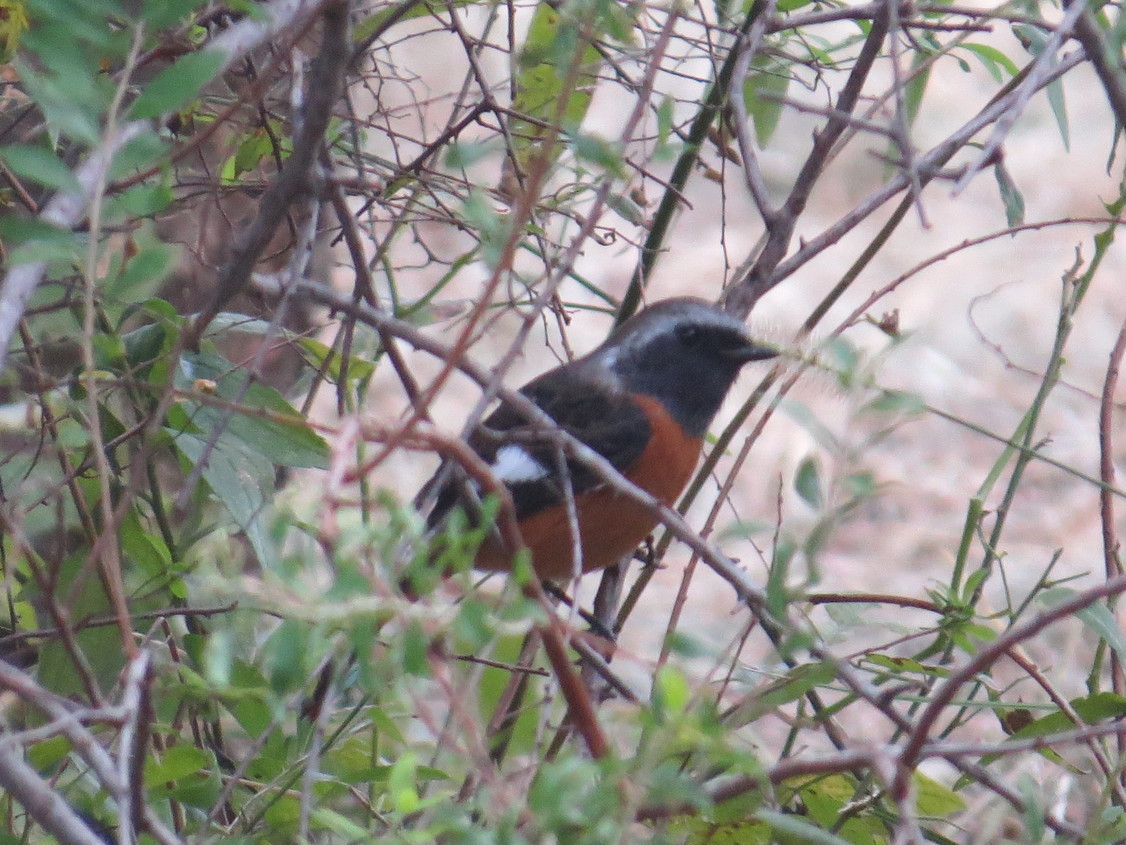 ≪金目の自然≫ ジョウビタキ(冬鳥)がやって来ました! 10月21日、午前9時半過ぎに金目親水公園へ散歩に出かけたとき、公園の南側に隣接する民家のアンテナで、また午後には園内のユキナナギの根元近くの枝に隠れるようにして、こちらの様子をじっとうかがっているいるジョウビタキ(冬鳥)を今季初めて見ることが出来ました。いづれも同じ雄のジョウビタキだと思われます。私にとって凛々しい雄の姿よりも、地味な雌のクルリとした目の愛らしさが大好きです。(ふぁいあ ふらい) 【参考】 全長15cm。オスは頭が銀白色、顔は黒色、腹は赤褐色。メスは体が灰色味のある茶色。翼に白斑があります。 日本では冬鳥で、平地から低山の農耕地、人家の庭先、公園、河原などに姿を現わします。秋冬には雌雄とも1羽ずつ縄張りを持ち、渡りの直後は枝先などで頻繁に尾を振り、おじきをする仕草をしながら鳴き、縄張り宣言をします。鳴き声は「ヒッヒッヒ」、「クワックワッ」と聞こえます。 |