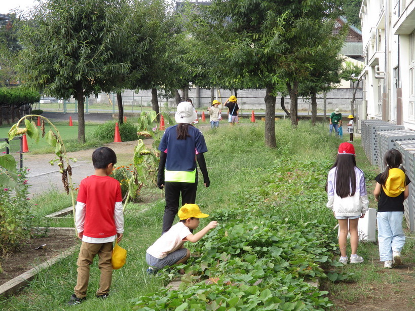 10月になり、秋らしい爽やかな空気が心地よい朝です。 1年生が生活科の学習で、校内の草原などで虫探しをしました。 「いもむしつかまえたよ。アゲハになるんだよ」「元気のいいコオロギつかまえた〜」などと、子どもたちの楽しそうな声が聞こえてきました。 | |