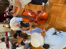 子育て支援「すくすくっこ」活動報告(9月) まだまだ暑さが厳しい中、9月4日(月)の「すくすくっこ」は、❝芸術の秋を楽しもう!❞ ということで、昨年に続き今年もアンサンブル音作りさんによる、弦楽アンサンブルコンサートを行いました。親子での参加者は3組(4人)、他にも大人のかたが十数人聴きに来てくださいました。 |