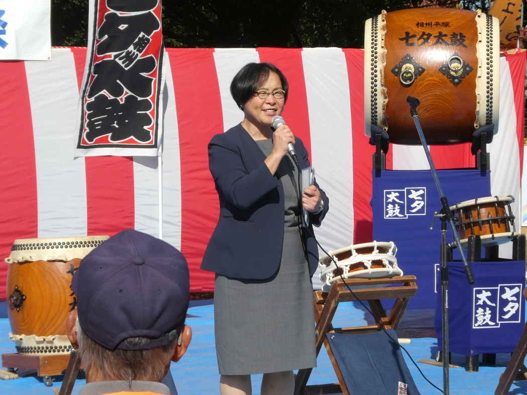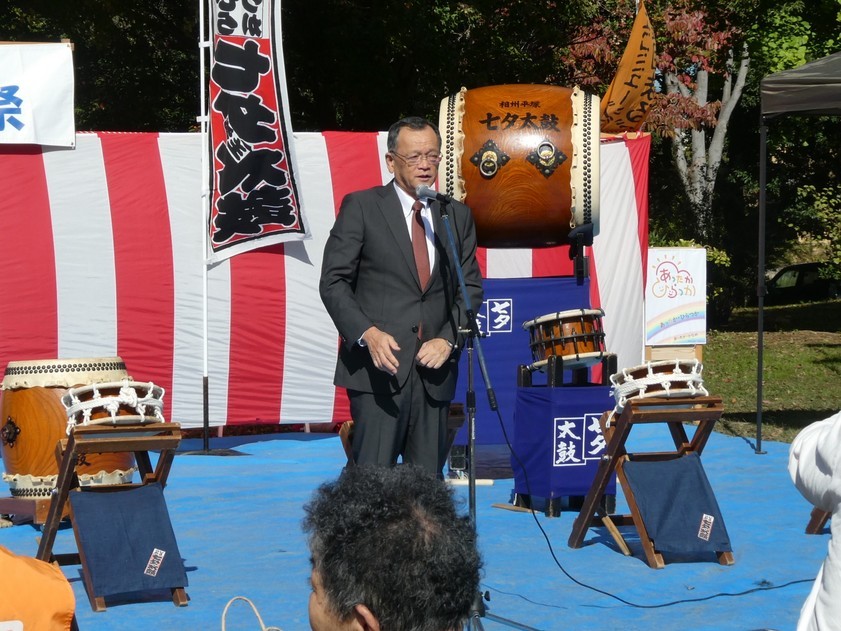 第17回金目収穫祭を開催しました! 11月3日(月・文化の日)金目親水公園において第17回金目収穫祭(主催=金目エコミュージアム、後援=金目地区自治会連絡協議会、協賛=金目商店会・金目地区社会福祉協議会)を開催しました。11月3日(文化の日)は「晴れの特異日」と言われ、当日も朝から雲一つ無い秋晴れの下、午前10時に金目エコ米村会長の挨拶で始まり、続いて市関係者、地元学校関係者の紹介があり、代表して吉野教育長の挨拶がありました。 また市外での公用があった落合市長、佐藤市議会議長も昼過ぎには駆けつけられ、祝辞の言葉をいただきました。 挨拶が終わり次第、さあアトラクションのスタートです。 しかし、俄かに空が曇り11時過ぎには雨となり、30分ほどで止んだものの、再び午後1時半頃雨になりました。この雨も20分ほどで止み、終了時の午後3時ごろには快晴に。 そんな中でも次のアトラクションが行われました(以下のPDFをご覧ください。)。金目中生徒はテントの中での演奏でした。 午前の部 詩吟、民謡(美和利)会、金目中生徒による吹奏楽 昼 の 部 祭り太鼓(中久保・大久保地区)、相州平塚七夕太鼓 午後の部 フラダンス(ケ・オルマカニオ・マウナロア)、 ダンス(HGCパッション) また、会場には、焼き鳥、豚汁、肉うどん、駄菓子、焼きそば、かき氷等の模擬店、秋の収穫を祝って柿、里芋、サツマイモ等の販売、又掘り出し物が楽しみなフリーマーケット、健康相談ができる高齢者よろず相談センター(地域包括支援センター)、金目エコの活動紹介等、来場者には1日居ても飽きない収穫祭だったのではないかと思います。 雨もすっかり上がり、イベントの最後を飾るクライマックスとして恒例の大抽選会です。今年の目玉は新米3s×10名分です。その他にも柿、里芋、花鉢等です。 賞品ゲットの皆様、おめでとうございます! 出演者の皆様、模擬店、フリーマーケット出店の皆様、ご来場の皆様、ありがとうございました。そしてエコの皆様、お疲れ様でした。(T.K) なお、この模様は、11月5日(水)から10日(月)までSCN(湘南ケーブルネットワーク)ワイド情報カフェ湘南館で放映されます。 |