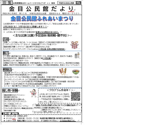 - 2026/01/30 金目公民館だより(令和8年2月号)