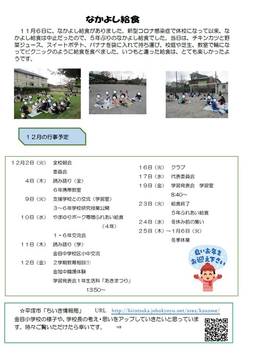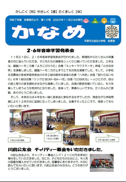 - 2025/12/01 R7金目小学校 校長室だより 10号