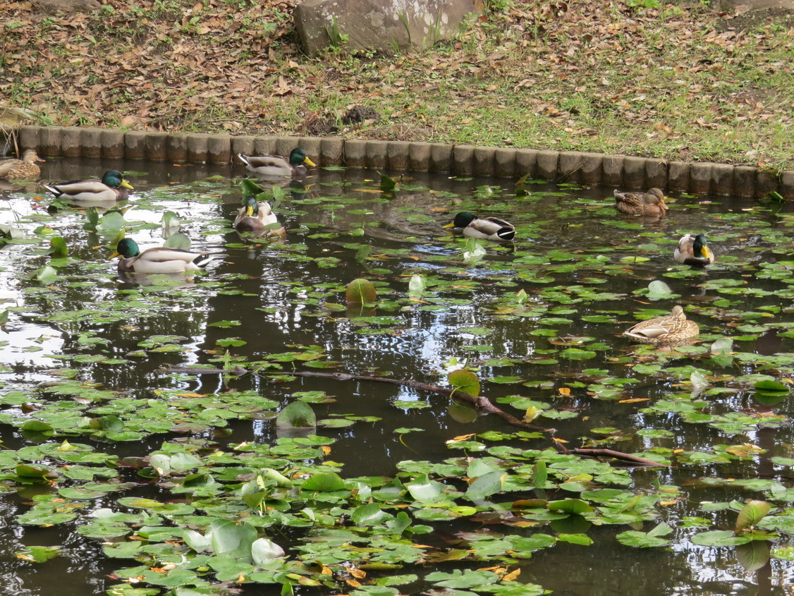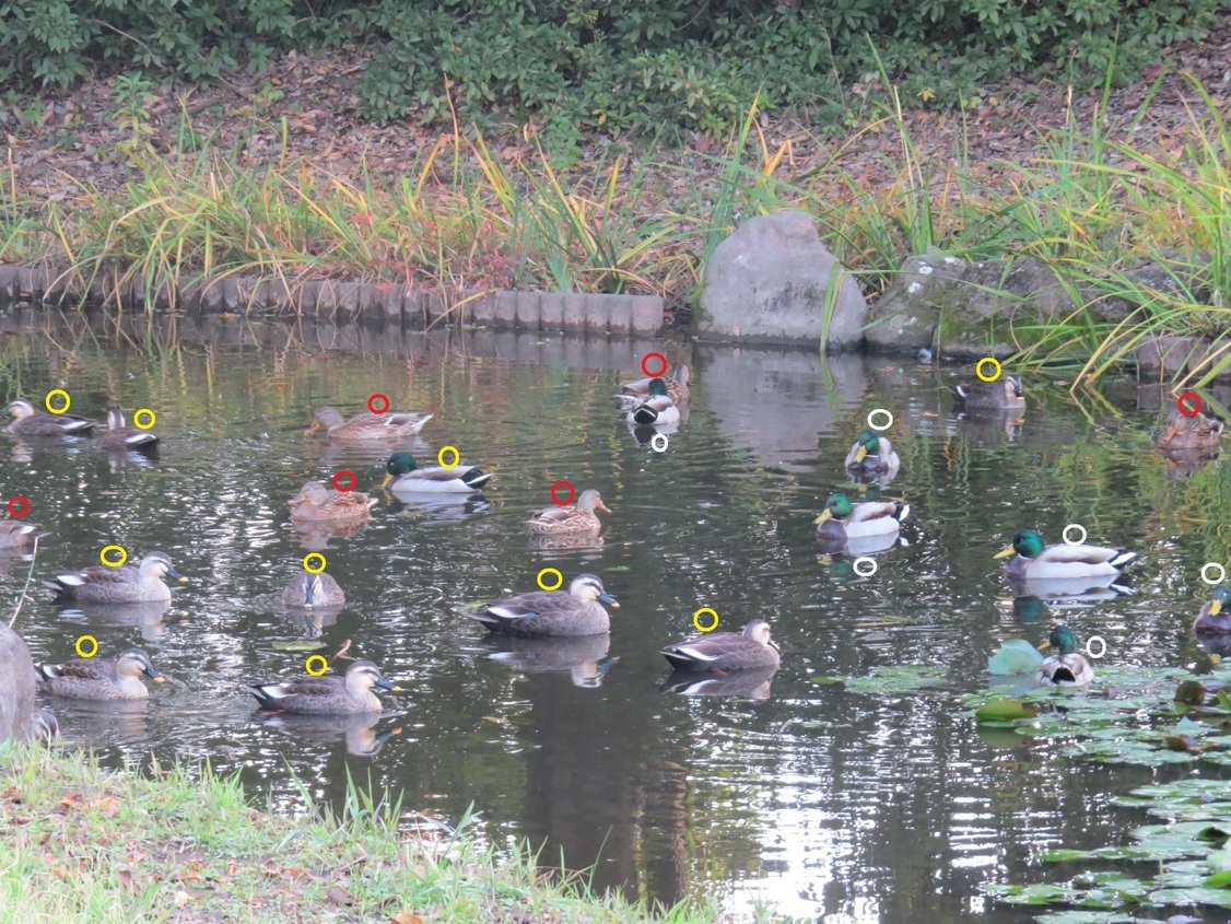 ≪金目の自然≫ 金目親水公園池は飛来数が増えてきました! 金目地区でのマガモとコガモの今季の初見日は葭際第2調整池での11月4日でした。それ以降は、下記のPDF(金目親水公園池、葭際第2調整池の飛来野鳥調査)で示すように多くのマガモ、コガモが飛来しています。しかし、この葭際第2調整池では留鳥のカルガモは未だ確認されていません。一方、金目親水公園では11月7日にカルガモ(留鳥)を観察しました。そして12日にカルガモ2羽を確認したものの、その後は確認できず、やっと11月17日から連日カルガモが見られるようになりました。 特に、急に気温が下がった18日の朝はカルガモ11羽、更に20日にはカルガモが17羽と朝の冷え込みが増すにつれて、金目親水公園池はカルガモが増えて来ています。ぜひ、池でのんびり過ごすカルガモとマガモの姿を散歩がてら見に来ませんか?!(PDF参照 金目親水公園池) ところで、飛来初期のマガモの雌雄の割合は、雄の割合がかなり高いという報告をしました。11月下旬になった現在、マガモの雄(エクリプス)の多くが生殖羽に換羽し、より雌雄の区別ができるようになりました。この時期でも公園池や葭際第2調整池も雄の割合がかなり高いようです(PDF参照)。いつになったらペアを組んだカルガモの姿が見られるのか楽しみに観察しています。(Y.Y.) |