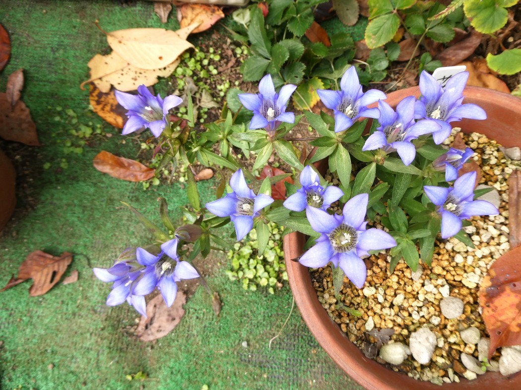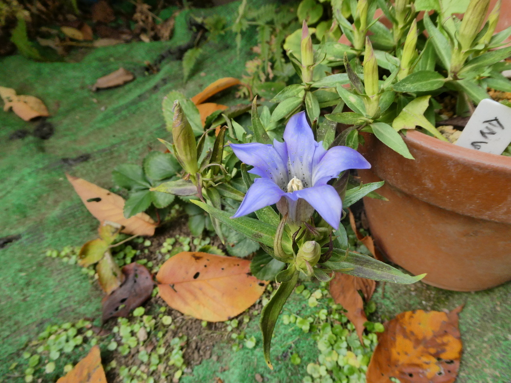 サリンドウの花13輪が咲きました! 今年3月下旬、ササリンドウ(2株)と古代ハス(蓮根2個)が鎌倉に住む知人から宅配便で送られてきました。 古代ハスは田んぼの土を入れたプランダーで4か月間育て、無事に7月16日に1輪の花が咲いたことを報告しました。今年中に株分けして来年は2個のプランターで育てたいと考えています。 一方、ササリンドウは水はけのよい鹿沼土を入れた6号素焼き鉢に3月24日に植え付けし、日当たりの良い場所に置き、適当な肥料を与えて育てました。 その結果、10月には14個の小さな蕾が付き、11月8日には先端の蕾が開花しました。1週間後の15日には6輪の花が咲き、それから次々に咲き続き17日には12輪が咲きました。 現在、最初に咲いた1輪が咲き終わり、新たに1輪が咲いて12輪と1つの蕾が付いた状態で私の心を和ませてくれています。 (ふぁいあ ふらい) |