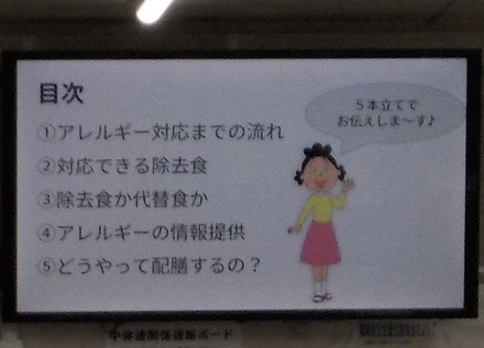 本日、15時45分から、給食委員会の渡邊先生に、「中学校給食実施マニュアル」をもとに、給食指導を経験したことがない先生たちに講習会を実施してもらいました。生徒たちは小学校で全員が給食を経験していますが、平塚市の中学校だけで教員をやっている先生たちにとっては、初めてのことばかりです。渡邊先生が作成したスライドをもとに、給食指導について説明があり、給食課が作成した配膳の動画を見ました。その後、養護教諭の永P先生から、スライドを使って、食物アレルギー対応についての説明をしてもらいました。保護者の方には書類提出でご協力をいただいていますが、9月2日より学校給食が始まります。 | ||
