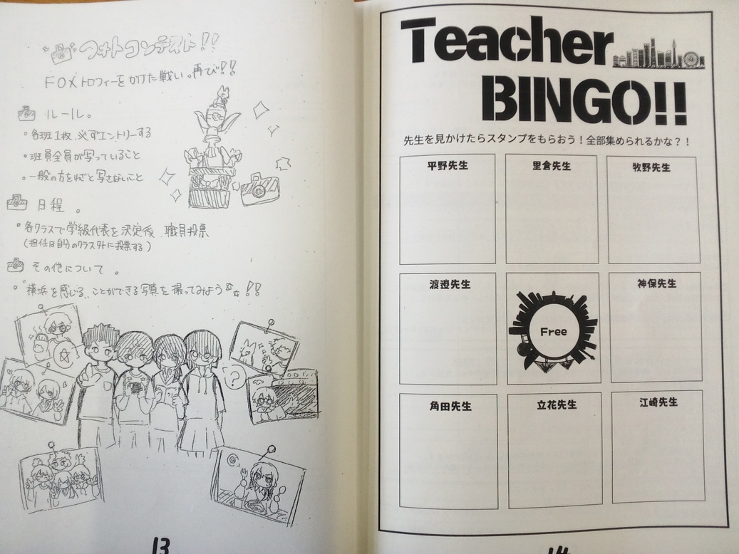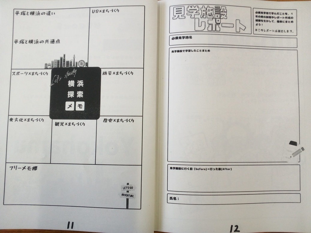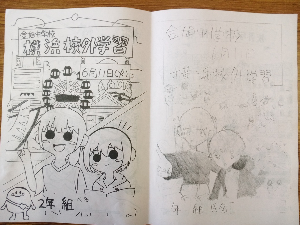 本日は2年生が横浜校外学習です。 引率していないので、リアルタイムではありませんが、可能な範囲で様子をお伝えしますので、どうぞご覧ください。 写真は冊子の表裏表紙です。スローガンは「ルールとマナーを守り、信頼をつかみとろう」で、目標は @先生からや皆からの信頼を得る A横浜と平塚を比較し、課題を見つける Bグループの人の良いところも見つける です。 9時前には全班、平塚駅出発チェックを終え、電車で横浜に向かいました。早い班はもう横浜に着いて、最初の見学場所に向かっているところです。 | |