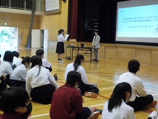 6校時に、地震に対する危機意識を高め、緊急時の避難と集団下校時の方法について再確認することを目的とした、地震避難訓練と地区別生徒会を実施しました。 天候が不安定なため、シェイクアウトから点呼まで教室で行い、移動はしませんでしたが、皆とても真剣に取り組んでいました。安心して学校生活を送り、学校を安全な場所にしていくための訓練です。来年度は、小中合同引き取り訓練も実施します。「大地震発生などの非常時の対応について」添付しました。地震発生後は、可能な限り地域の子どもたちの登下校の様子を見守っていただけると幸いです。 | |