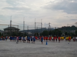 本日は運動会練習2日目でした。昨日より気温は低かったですが、とても暑い13時40分に全校生徒がブロックごとに整列し、金中ソーランの全体練習を最初に行いました。全校生徒で合わせて初めての練習でしたが、3年生が大きな声を出して、一生懸命に踊って全体を盛り上げていたので、本番の仕上がりがとても楽しみです。その後はトラックでGod White Rabbitと大繩跳びの種目説明を行い、同時に、それぞれのブロック練習場所で他の種目練習をしました。最後にブロック集会で反省と人数確認をして解散、部活動対抗リレーに出場する生徒だけ残って種目説明を終えるころに雨が降ってきました。2日続けて放課後に雷がなっていたので、部活動は切り上げて下校しています。明日は予備日でしたが、熱中症警戒アラートが発表されているので、運動会練習はお休みして授業を行います。暑さの疲れが出ている生徒も多くいるようなので、ゆっくりと休んで来週の練習と本番に備えてもらいたいと思います。 | ||