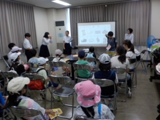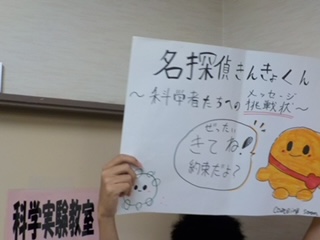 子どもたちと地域の方とのふれあいを目的に、旭北公民館において10:00〜12:30『公民館へおいでよ!2024』が開催されました。科学部の生徒が参加し、旭北地区在住の小学生に向けて、科学実験教室を開設しました。公民館の2階の音楽室を貸し切って、青少年のための科学の祭典と同じく『名探偵きんきょくん 〜科学者たちへの挑戦状〜』実験クイズと実演で事件の謎を解いていく内容で、来場した小学生に丁寧に手ほどきをしていました。体験をした小学生には科学への興味・関心をもってもらい,中学校に入ったら科学部で活躍してくれることを期待したいと思います。 | ||
