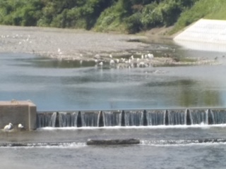 金目川金旭中通学橋にライブカメラが設置されています。金目川・金旭中通学橋・平塚市立金旭中学校・金目川青少年サイクリングコースが見えるライブカメラで、国土交通省の独自配信による静止画のライブ配信映像です。一度ご覧になってみてください。 https://cam.river.go.jp/cam/now/103585028.jpg 写真は、橋から見た学校と金目川に白鷺がたくさんいる様子です。白鷺の美しい立ち姿にかけていった言葉に「客と白鷺は立ったが見事」がありますが、客は長居をしないで、早く帰るほうがよいということだそうです。美しい鷺の立ち姿を金目川ではたくさん見ることができます。 |