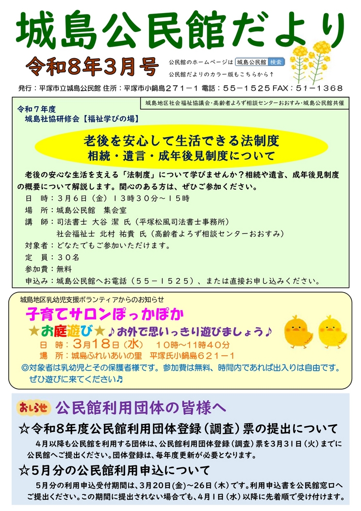- 2026/02/27 城島公民館だより( R8‐3月号)