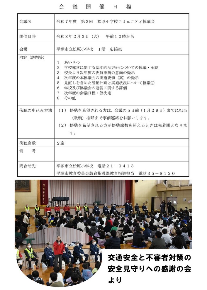 - 2026/01/07 第3回松原小学校コミュニティ協議会開催のお知らせ
