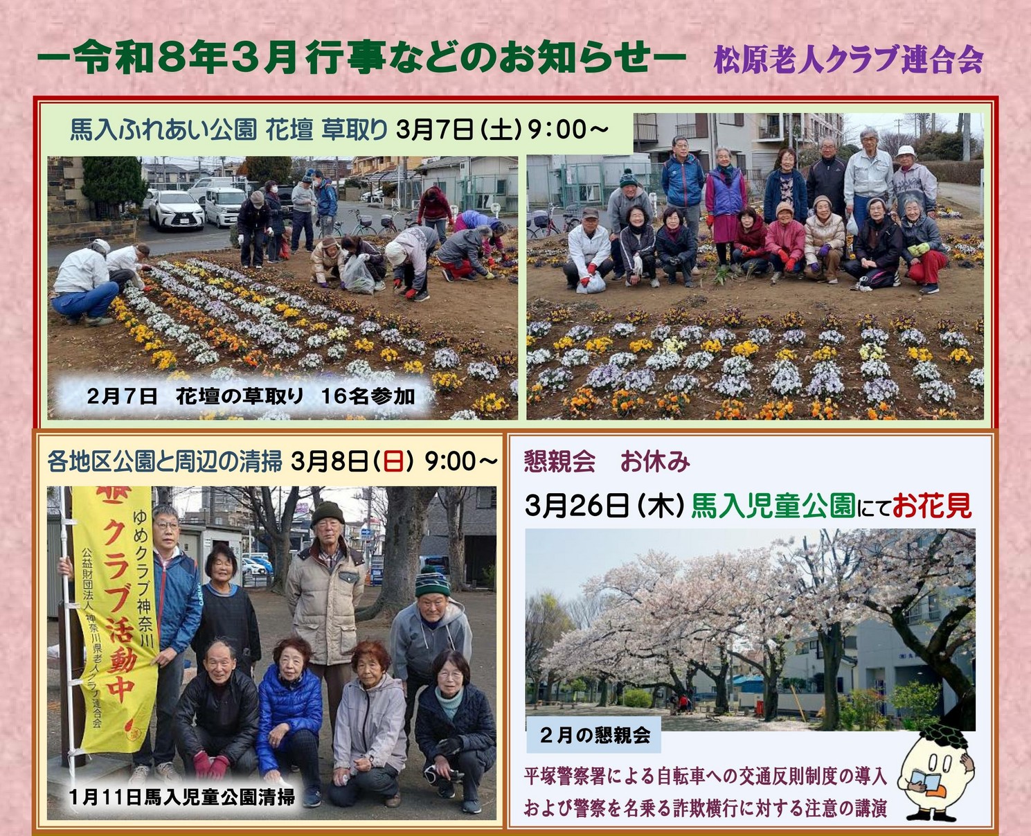 - 2026/03/02 松原老人クラブ連合会より3月予定