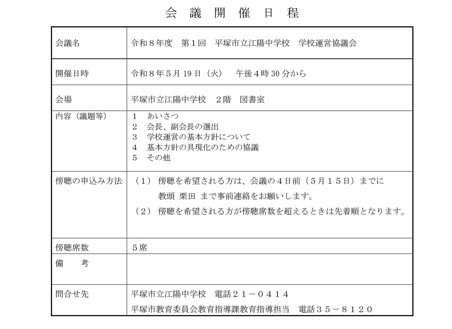 - 2026/03/01 江陽中学校より(学校運営協議会より)