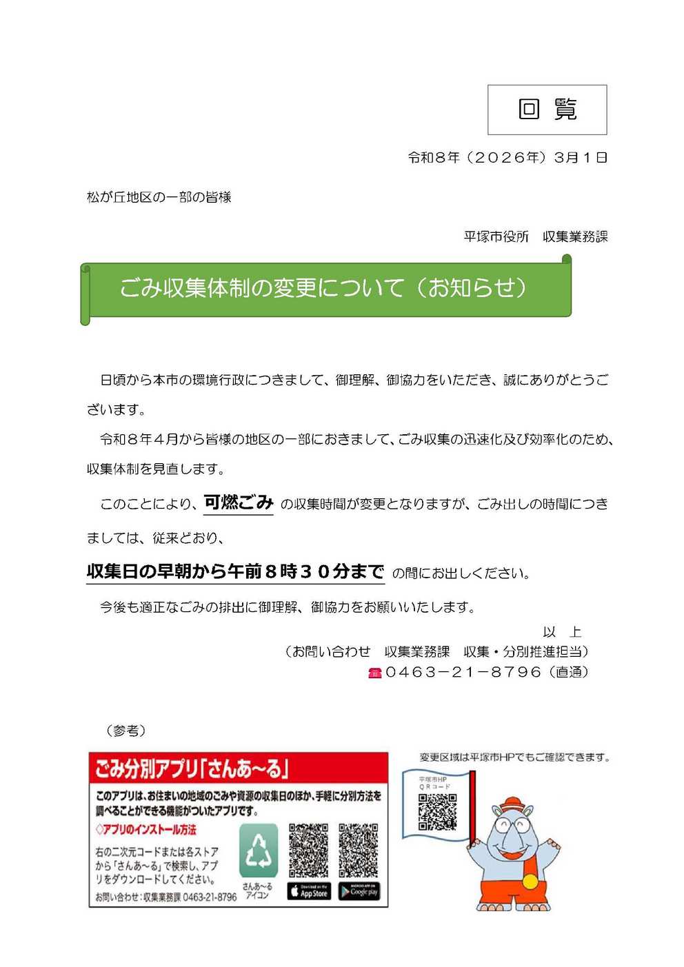 - 2026/02/27 【回覧】令和8年度ごみ収集体制の変更について(令和8年3月)