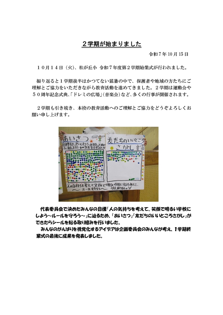 - 2025/10/15 松が丘小学校 2学期が始まりました