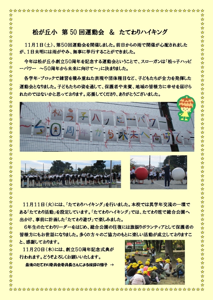- 2025/11/12 松が丘小第50回運動会&たてわりハイキング