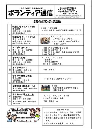 - 2026/02/25 福祉村・ボランティア通信3月号