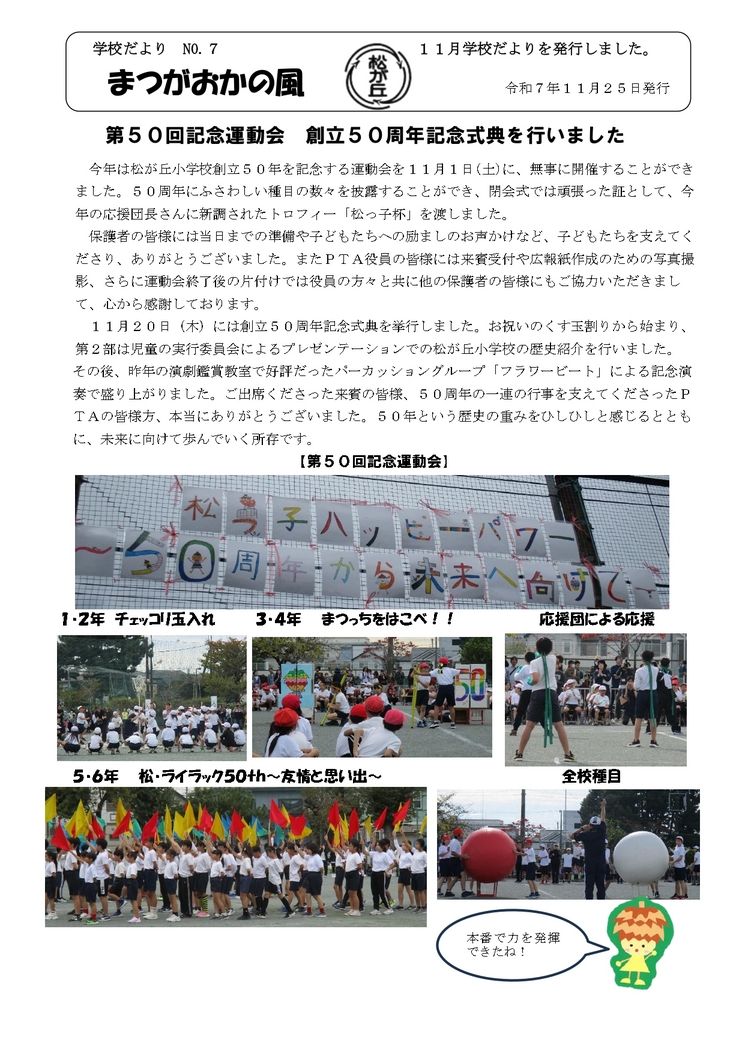 - 2025/11/26 松が丘小学校 11月学校だよりを発行しました